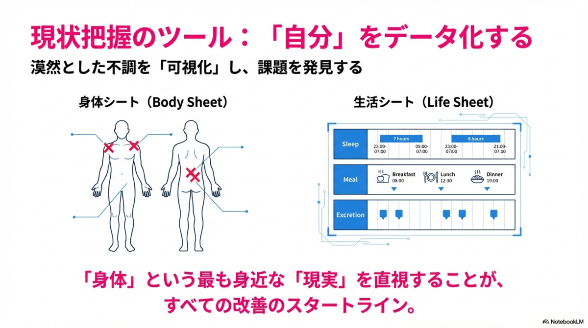 自分自身を観察し、ありたい姿を描き、現実と照らし合わせて課題を見つけ、根拠ある行動で改善します。